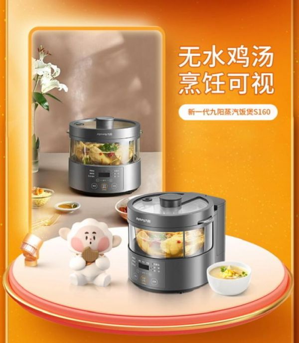 新一代九阳蒸汽饭煲S系列:行业原创蒸汽技术,能蒸无水鸡汤。