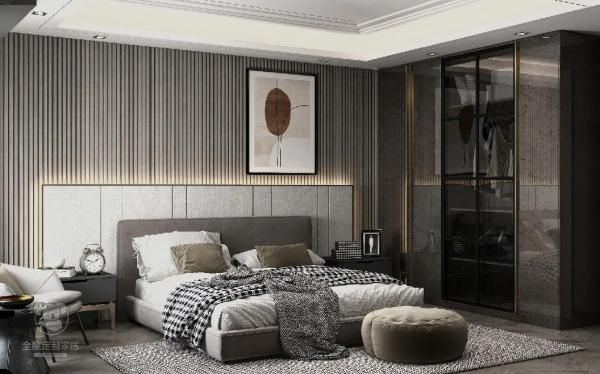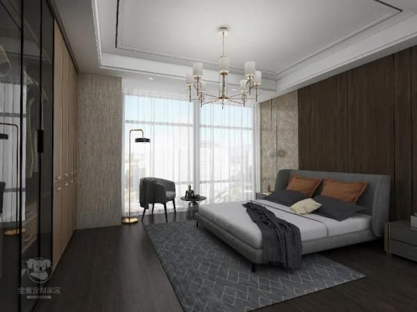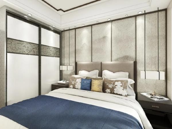 移门不需要安装拉手,完整的门板更具块面感,还可以根据自己的喜好,搭配与卧室风格统一的腰线。