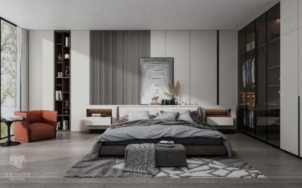 移门衣柜在开启的过程中完全不会占用过道空间,侧边足够摆下床头柜,有效缓解空间逼仄感,开门方便。