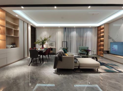 位于富森美家居城北的艺术整装馆,一楼包含了主辅材、软装、家电等产品展示,隐蔽工程、防水等工艺展示,二楼是设计师共享办公室和一些样板间展示。材料、家居、施工、设计,在这个1200平米的空间中,包含了整装所需的完整链条。