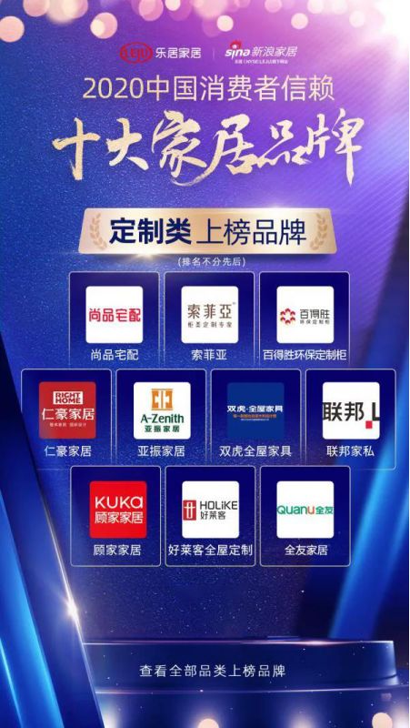 2020年11月8日,百得胜环保定制柜更是在400多万网民的支持下,从近500个家居品牌中脱颖而出,荣膺了[2020中国消费者信赖十大定制品牌]荣誉称号。