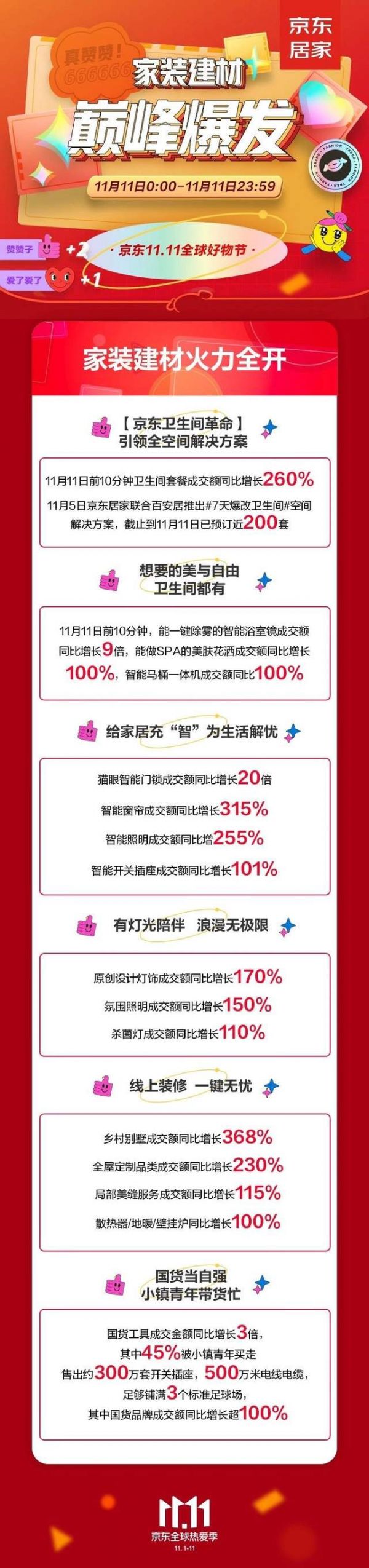 京东11.11家装建材大爆发:卫生间套餐成热门,智能家居成交额翻番