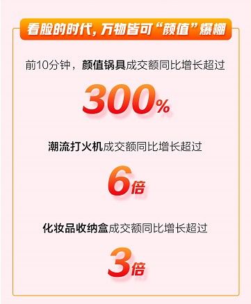 人们对美的追求永无止境,在这个看“脸”的时代,颜值也成为了年轻男女们在京东11.11选购家居日用产品的重要标准。11月11日前10分钟,颜值锅具成交额同比增长超过300%,11月1日至11日期间整体成交额同比增长超100%;11月11日潮流打火机成交额同比增长超过6倍,化妆品收纳盒成交额同比增长超过3倍。