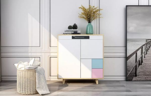 以新品智能健康鞋柜为例,融入多项抑菌、除菌技术,使鞋柜兼具烘干除湿、抑菌、除臭等功能,门板、抽面安装反弹装置,更加符合人体力学原理,并以烤漆门搭配实木边条,兼具时尚与质感,品质更有保障。