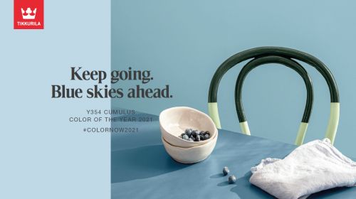 在历经以新冠疫情事件为首的一系列变革与挑战之年,迪古里拉选择Y354 Cumulus——一种以浅蓝为主的色调,用预示着更光明未来的色彩作为芬琳漆2021流行色,通过色彩的力量为生活注入希望,激励人们乐观向前,共建美好未来。“Keep going, blue skies ahead”这便是Y354 Cumulus 所要表达的。