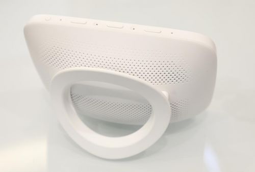 小美AI触屏音箱的主体长193mm,高139mm,最大宽度94.5mm。正面配了一块7英寸的分辨率为1024*600的屏幕,搭载了一颗500万像素的摄像头。