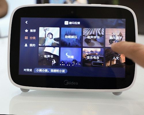 尤其要说的是这款产品的网络生态内容上的优势,美的与喜马拉雅平台的战略合作,使小美AI触屏音箱拥有1亿+有声内容,328个品类,囊括了海量儿歌、有声书、主播 平台,相声评书等内容。音乐上跟QQ音乐合作,视频上与爱奇艺合作更丰富产品各个维度的资源内容。不论是哪个年龄段,都能从中找到适合自己的学习娱乐内容。