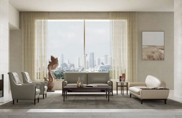 大多数横厅户型,都有一个超大的双阳台,将沙发摆放在落地窗前,不仅能够大大的节省空间,还能饱览窗外的美景,让家多一份惬意之地。