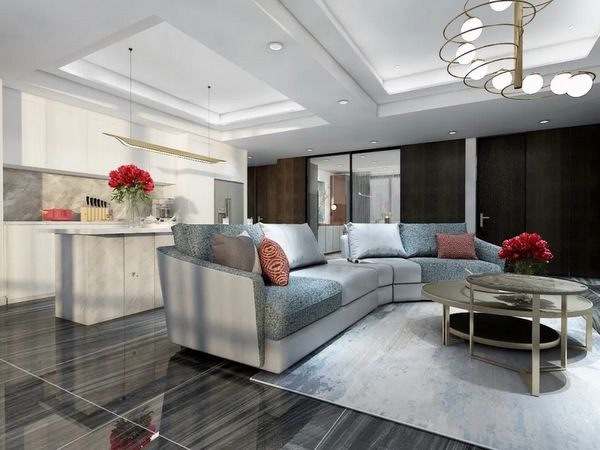 沙发靠餐厅,是横厅最常见的设计手法,开放式的客餐厅,空间显得更宽敞。