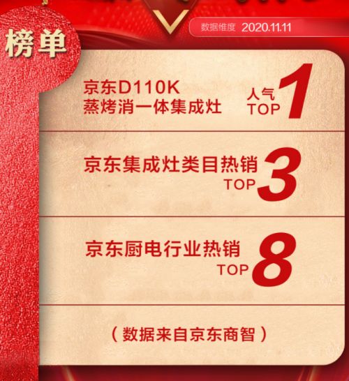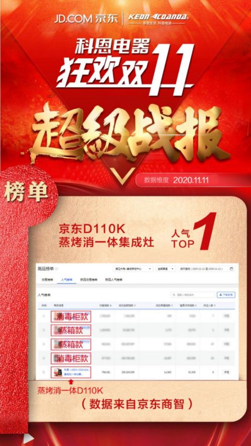 双十一战报出炉!科恩集成灶一战成名,荣耀冠军榜