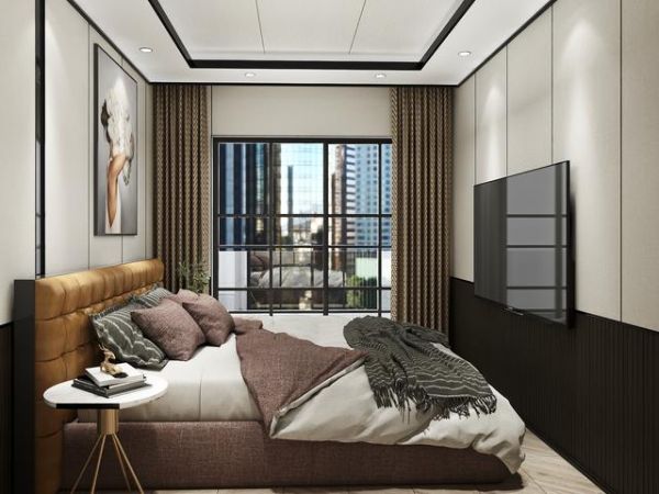 卧室不仅是一个供人睡觉的地方,更能见证居住者的品位追求,上下不同墙板的设计,一枕幽梦唤起对家的深层次想象。