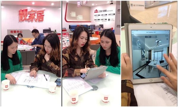 小璇按照约定的时间到门店,设计师泽榕热情地邀请小璇进店坐下来,给她分析户型并展示做好的设计方案。户型布置图、软装定制图、智能布控图、家电规划图等30多张效果图,同时还用VR全景效果呈现,客厅、餐厅、厨房、卫生间、卧室、阳台,每个空间布局设计一清二楚,让小璇提前预览“脑海中的家”。