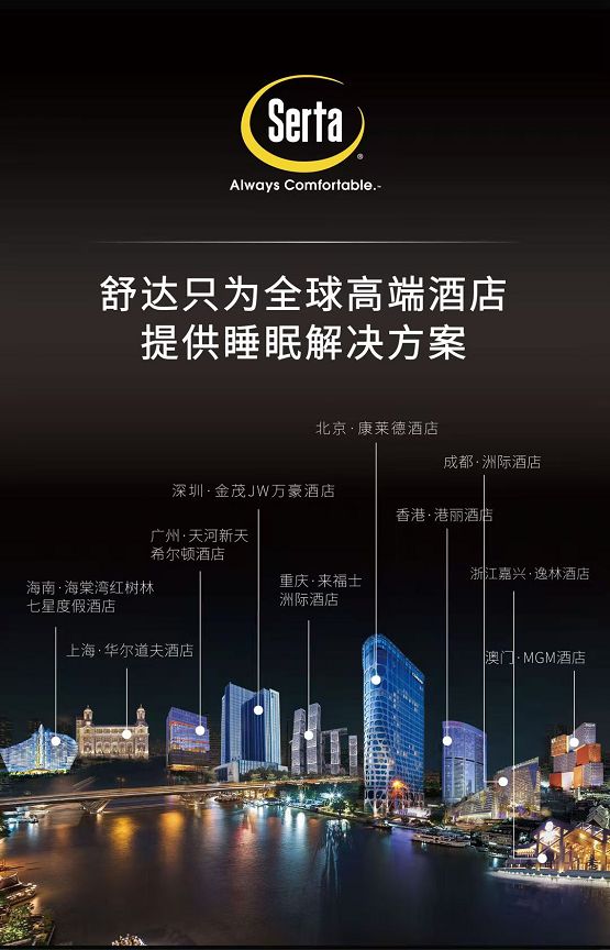 IHG洲际酒店集团,是一个全球化的酒店集团,在全球100多个国家和地区经营和特许经营着超过4400家酒店,超过66万间客房。舒达床垫(Serta)在全球范围内与IHG洲际旗下酒店保持长期合作。