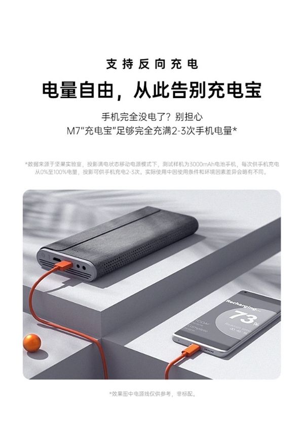 不得不说,坚果M7为了方便大家是下了血本,配置了60W快充,一个小时充满80%的电量,别看只有80%,坚果M7的的电池容量足足够9200mAh,还可以随时随地变身为充电宝,它的电量充满你手里的iPhone12三四次完全没问题,在户外不停地享受大屏影视,依旧可以支撑2.5个小时,陪你在户外度过完美的周末。与此同时,坚果M7还支持反向充电,秒变充电宝,3部手机电量足够!完美适配户外需求,从此电量自由,告别充电宝。