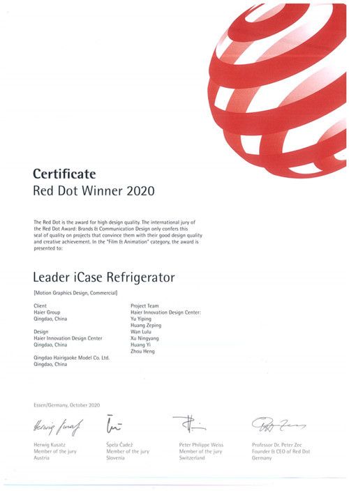"获得红点传达设计奖的作品,足以证明它们在设计方面的优秀。"红点奖创始人兼首席执行官Peter Zec教授说道,"这些获奖产品凭借的不仅是其优美的外观,无与伦比的功能设计也赢得了评审团的一致认可。"在获奖名单中,由Leader提交的iCase系列A210冰箱宣传视频就是这样的作品。