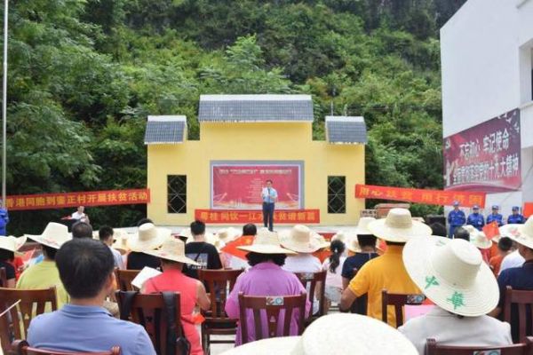 2020年10月24日,广西昀泽集团董事长李家峰会长到金城江区六圩镇龙谷村参加了“脱贫攻坚成果汇报会暨重阳节文艺汇演活动”,为龙谷村带去了募集的爱心资金与部分物资。