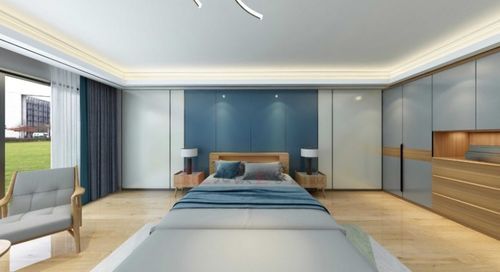主卧同样是不脱离简约为主的设计手法,带有优雅的独特调性,营造睡眠时须要的宁静感受。