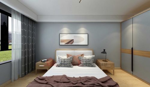 床尾是一个实木柜,原木色和高级灰的搭配,时尚感爆棚。