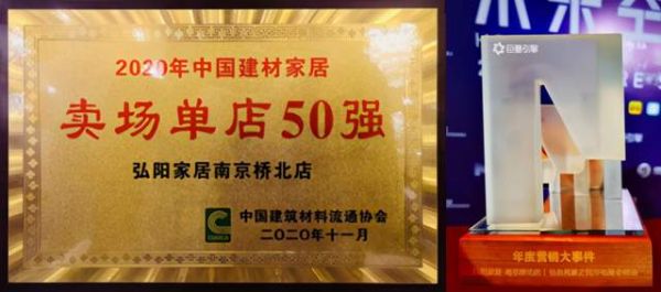 同时在由全国工商联家具装饰业商会和巨量引擎联合举办的2020未来空间大会上,弘阳家居.桥北店凭借“弘色风暴之百万电器全城送”营销活动一取夺得“2020行业年度营销大事件奖”!