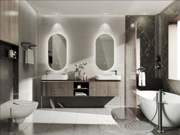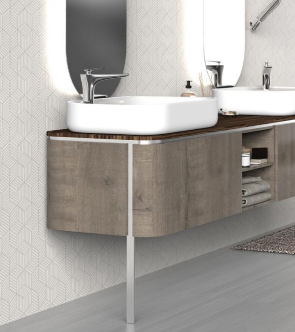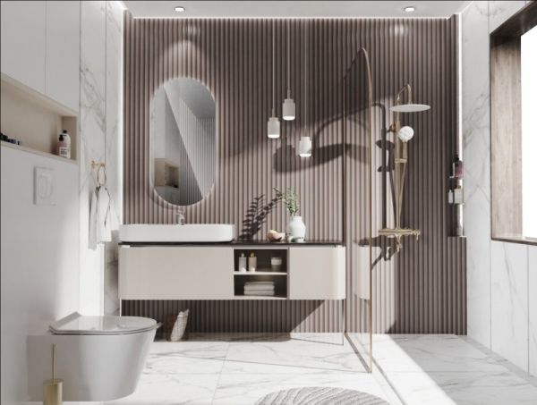 典雅系列采用模块化定制方式,适合不同家庭的空间需求,5-15平米的卫浴空间都可以定制使用。其中,木纹面设计款,具有一种自然复古气息,2.2米超大尺寸,置物充足,让浴室洗漱不再拥挤。