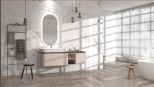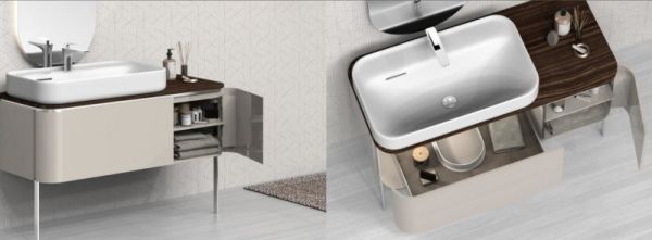 典雅浴室柜系列,偏圆润的简约造型,体现东方雅致典范。意大利进口岩板台面,坚固、美观,搭配宜来薄边系列陶瓷台上盆,呈现都市家庭精致生活的一面。