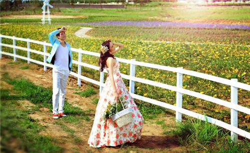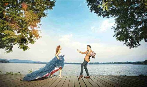 2、新人拍摄婚纱照时可以站直,挺直自己腰背,自然就会将新人的长腿与臀部曲线显的出来,还可以让新人的表情会更加有精神。