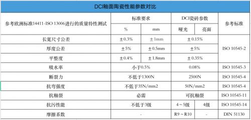 综合来看,DCI各项性能参数均超过瓷砖行业国际标准: