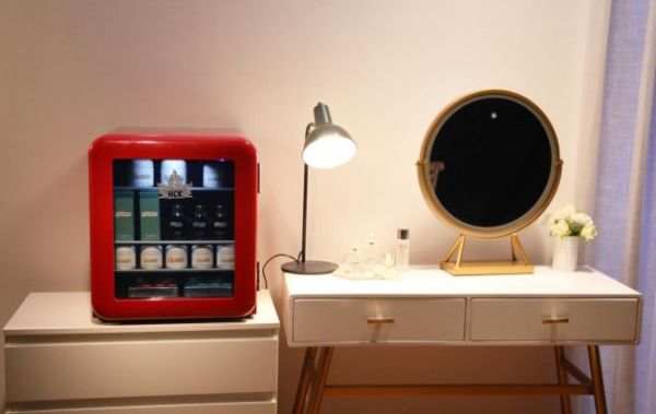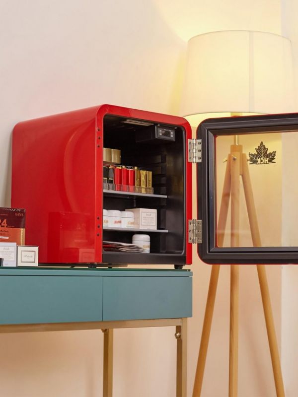 首先这台冰箱的外观就让人惊艳,HCK哈士奇家的产品走的都是复古风,但这台美妆冰箱的独到之处在于它的全透明视窗设计,不仅很有新意,还能让美丽一览无余。另外,HCK哈士奇还别具匠心地在钢化玻璃上镀LOW-E膜,能够有效抵御光线干扰,避光避热、延长化妆品的使用寿命。