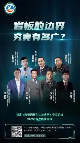 对于未来,陶瓷行业将迎来怎样的发展机遇,陶瓷幕墙和岩板将走向何方?12月2日下午14:00,备受行业关注的中国陶瓷工业协会陶瓷幕墙与装饰材料分会第一届第五次会员大会将如期举行。届时,同继锋、刘忠伟、尹虹等行业大咖、专家学者齐聚佛山西樵山大酒店,共同探讨陶瓷幕墙及岩板未来发展局势。