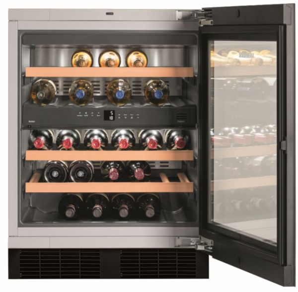 UWTgb 1682酒柜中的搁架采用榉木制作,并配有抽拉滑轨,最多可存放34瓶0.75升的波尔多红酒,无论是酒品的存放还是拿酒都十分便捷。不仅如此,它还加装了FreshAir活性炭过滤器来更换空气,确保柜内不会产生异味。酒柜内部LED照明系统,可以使红酒长时间沐浴在灯光下,方便用户存取。
