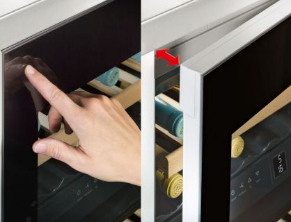 UWTgb 1682酒柜的酒柜门还添加了Tip Open技术,用户只要轻轻一点门框左上角,玻璃门就会自动打开7cm,方便用户开门取酒;若是不小心意外打开,如果尚未将其进一步拉开,门3秒后也会自动关闭。