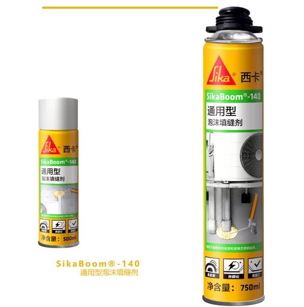 SikaBoom®-140这种泡沫胶填缝剂适用于粘合、固定、安装、隔声/保温/隔热/绝缘、密封防潮、防尘、气体隔离、填补结构空缺、工程洞缺和各种破裂缝等。