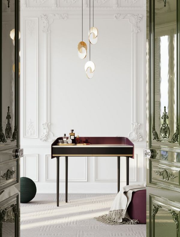 「小钢琴梳妆台」灵感来自于巴塞罗那剧场钢琴独奏和《蒂凡尼的早餐》,钢琴般流畅高贵的造型,精简轻奢的风格,以及意大利进口大理石、头层牛皮等多种高端材质带来的高贵的质感,将西方美学完美融入到了中国现代生活家居设计中。