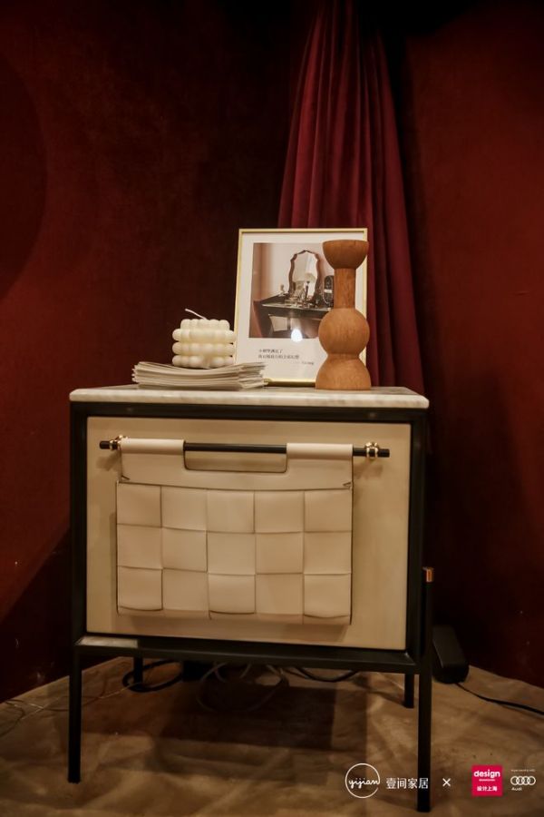 展位现场,一款乳白色的床头柜,吸引了不少观众注意,被称之为「时髦人士必备的珍藏单品」。壹间家居首创将奢侈品手袋元素融入到家具设计中,以精细编织工艺演绎床头柜外部立式挂袋,其内部有超大收纳空间,呈现出壹间家居对产品“颜值+功能兼具”的高水准。