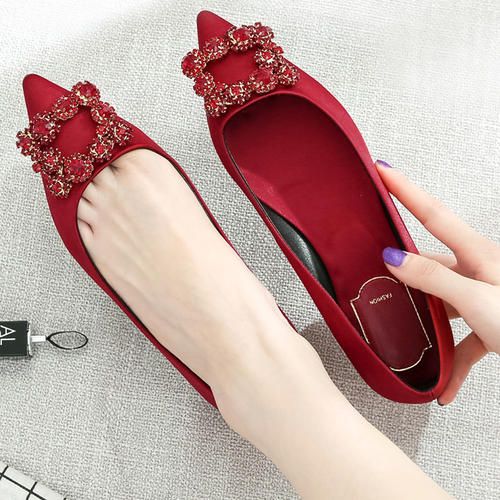 婚鞋要选择合脚、舒服的,穿上后脚趾能在婚鞋里自由活动,前脚要有活动余地,这样大小的婚鞋会比较好,所以选购时一定要两只脚同时试穿,然后试着多走几步,脚后跟能塞进一根手指的空间最好。