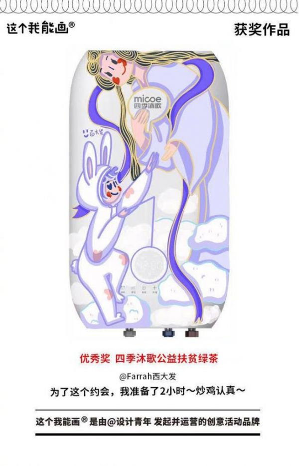 而本次以微博平台为依托,并联合目前在设计美学领域顶流位置的设计青年,共同开展的“我和嫦娥有个约会”DIY创意创作活动,更是吸引到了线上295万人的围观讨论,以及2423人次的热情参与,再次成为中国航天相关活动中的一大热点。据悉,此次活动的开展形式是以四季沐歌速热电热水器机身表面为“画布”,以“我和嫦娥有个约会”为话题,让设计圈大咖们尽情挥洒天马行空的想象力与创造力。在赋予“嫦娥奔月”以新意的同时,更通过这种方式同贺“中国航天探月工程”又一里程碑时刻地到来。