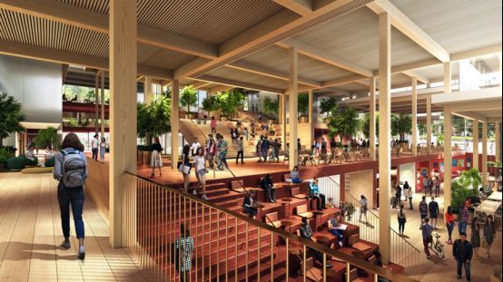 “对于我们来说,这将是全然一新的空间——不以学术为中心,而是完全为社交而生。它毫无保留地对所有人开放,尤其以一系列的灵活空间鼓励交流与合作,在这里,无论运动员、演员、舞蹈队或学生会成员,所有人都可以共同聚集在一起。”