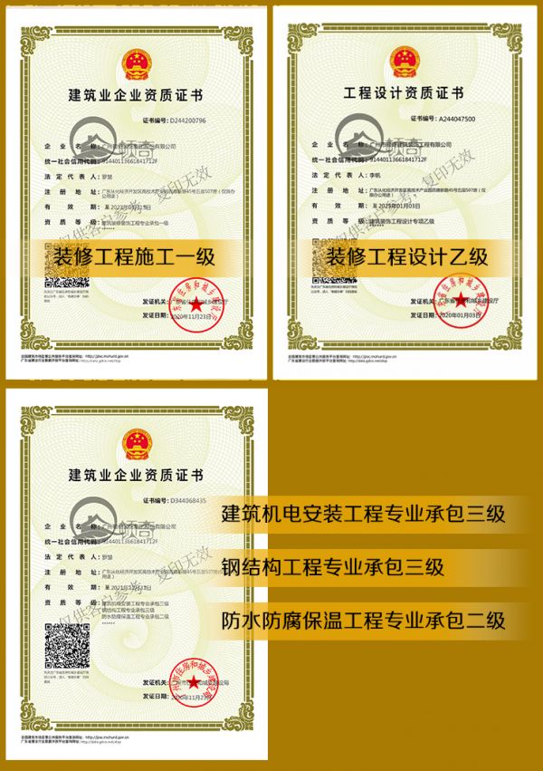 顿奇集团拥有完整的国家设计与施工资质
