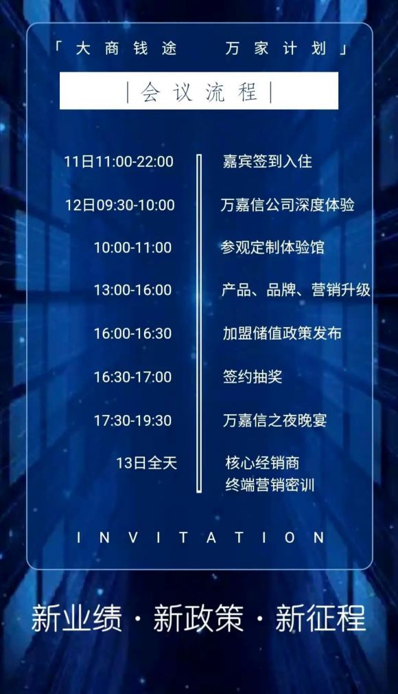 万嘉信是一家积极向上,活力十足的公司,他们的经销商是一群有梦想,有追求的优秀者。这次也是邀请了全国各地最有想法的经销商代表前来参会。因此,这不仅仅是一场单纯的年会,更是一场实力大商之间的交流大会,在这样的氛围里,大家可以畅所欲言,把自己最实用的经验分享出来。在大伙的实力碰撞下,不知不觉,都是一次超凡脱俗的精进。这也是万嘉信的企业文化,友爱、开放、突破。据说,很多经销商早早地就买好了车票,只等这次会议的圆满召开呢!