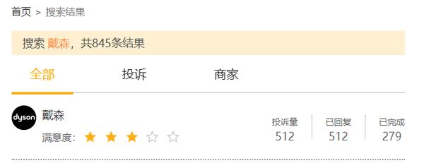戴森此次新品“质”的缺失其实并非偶然事件,2019年戴森被踢出美国消费者报告(Consumer Reports)推荐名单,原因为5年内损坏率高达一半,可靠性、耐久性与售价不符。国内“黑猫投诉”平台多达840多条质量投诉问题,其中包含“吸尘器电池寿命短,保修期一到电池续航就降低”、“产品品控有问题,新机到手就出现主机故障”以及“吸尘器多次返厂维修但结果却是问题越来越多”等多个方面的问题。
