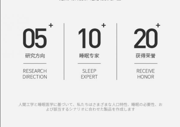 SIDANDA联合日本健康睡眠博士Kobayashi Yoshimi(小林芳美)根据人体工学、睡眠医学,开展了数项具有前瞻性意义的应用研究,打造针对不同睡眠需求,比如人群特质、适用场景的产品,致力于为百万家庭提供舒适的鹅绒睡眠体验。