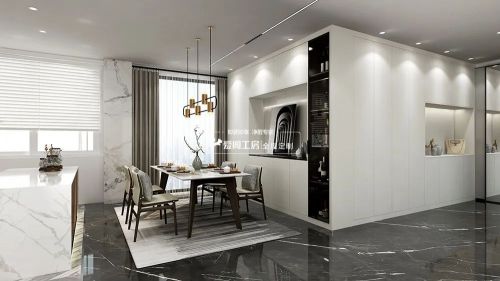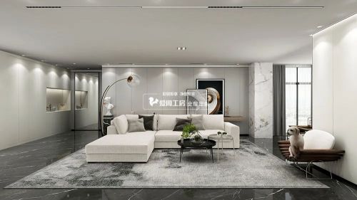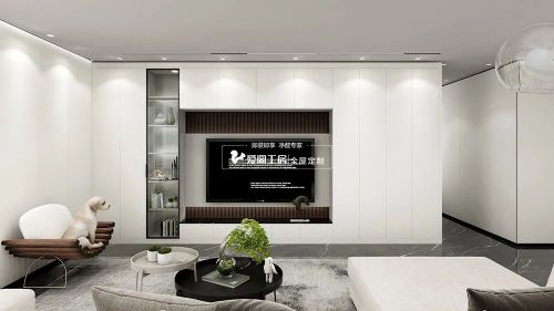 客厅大面积的使用白色,使得整片天地都有一种融为一体的感觉,让空间趋于平面化,呈现出极致的简洁。在极度削减的空间里,电视背景和玻璃柜成为视觉焦点,简单的空间以及视觉的搭配凸显质感。丰富的空间层次为整个客厅增添了几分艺术之美。