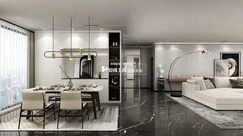 无装饰的背景墙,配上质感模糊的星河灰,就宛如寂静的夜笼罩着薄薄的月光,柔和纯粹,呈现永恒的静态美。对于空间留白的处理让人觉着宽敞平静,极简的生活主义,让忙碌归于惬意,让汹涌归于平静。让身与心获得片刻喘息,这才诠释了家的真实意义。