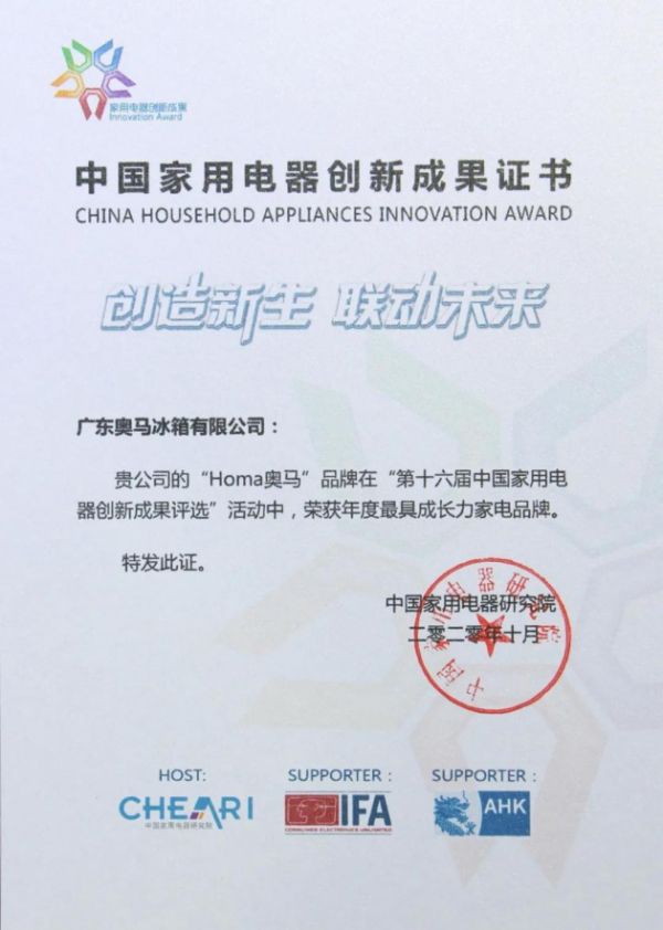 当前,创新驱动、科技引领已经成为了中国制造业的主旋律。对于中国家电产业来说,创新成为了行业稳步、持续发展的核心驱动力。今年,由中国家用电器研究院主办的“第十六届中国家用电器创新成果评选”活动中,南头镇的广东奥马冰箱有限公司旗下品牌“Homa奥马”获得“年度最具成长力家电品牌”荣誉。值得一提的是,从2017年开始,这已是奥马冰箱连续第四年入选“年度最具成长力家电品牌”。