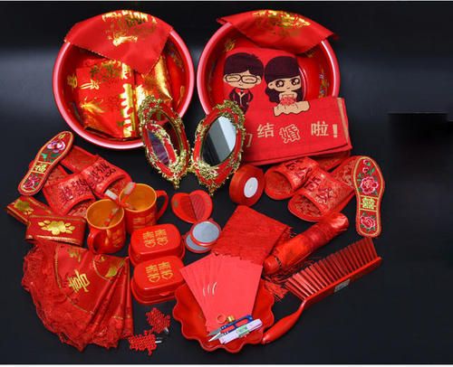 可以在结婚盆里放生活用品,比如牙膏、毛巾、杯子等,最好准备两份,千万不能准备单只,寓意新人成双成对。