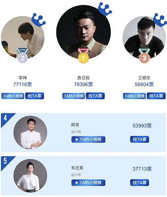 经过大众网络票,2020年人气头号设计师TOP5,现已诞生。