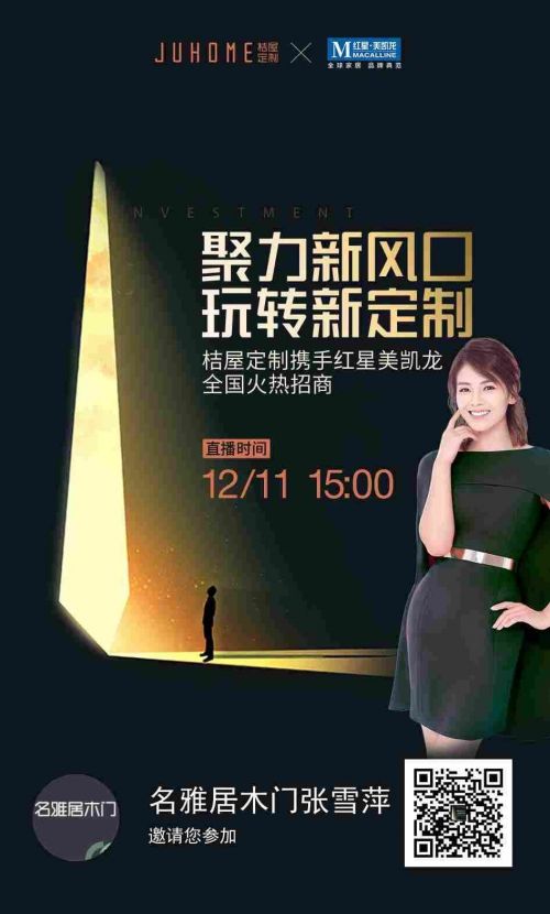 12月11日15:00,聚力新风口 玩转新定制,桔屋定制&红星美凯龙与你相约,立即报名,限量席位,看谁出手快!