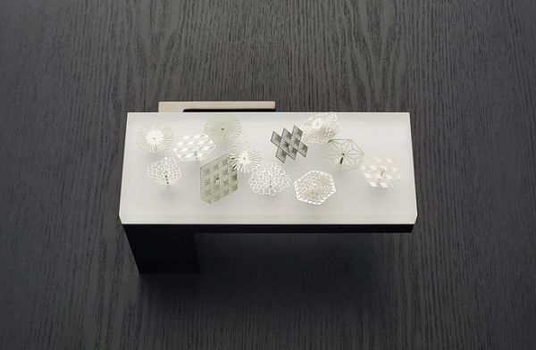 在这件简约但不简单的作品中,纤细朦胧却蕴含着一种感动人心的力量,杨明洁分享道:“这件作品自然而然就这么诞生了,并非为了这个项目刻意去表达什么。上面拓香片的叶片非常纤细轻巧,以镂空半透的形态漂浮在上面,我很喜欢这种感觉。”