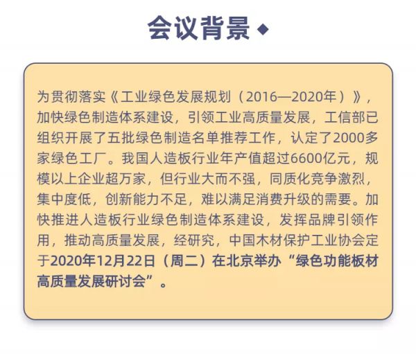 活动日程 | 2020绿色功能板材高质量发展研讨会