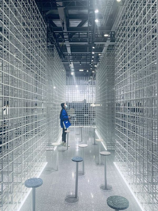 “游山-观石”概念馆由画王·大理石联袂共生形态倾情打造。展馆突出画王·大理石“现代空间美学筑造者”品牌理念,以遍野矿山为造型灵感源泉,设计师将“矿石之境”投射入空间,把采矿时山体的切面提炼成几何立方元素,运用方正立体和网格结构极致演绎矿山矿石的层层叠叠,石材荒料与金属材料的结合表达着自然与工业的融合与竞合,透视感、立体感、层次感浑然天成,具象与抽象交替变幻。